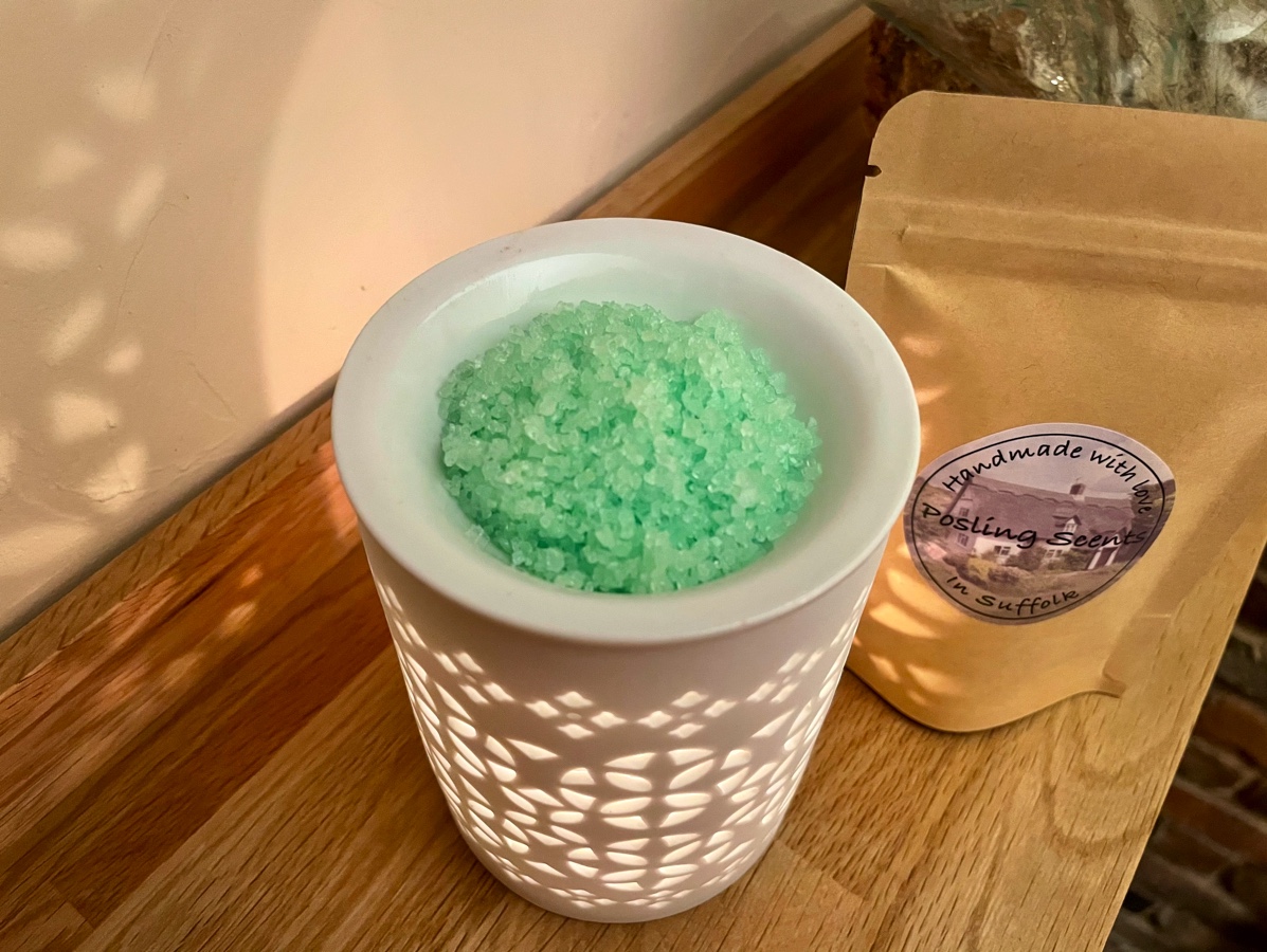 Just pop 1 or 2 teaspoons into the well of your burner and use a 4 hour tea light. They don’t melt like wax melts and can just be poured into the bin or even hoovered up once the scent is spent.