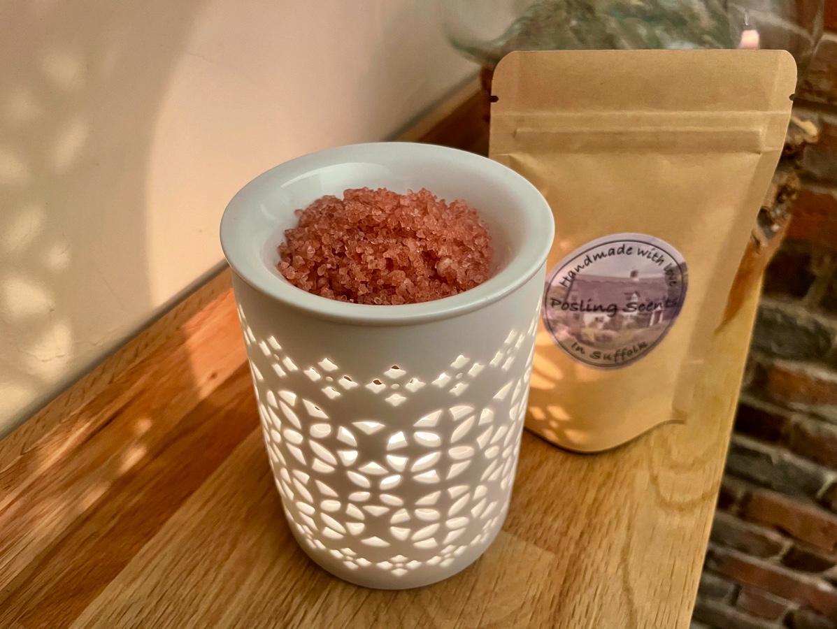 Just pop 1 or 2 teaspoons into the well of your burner and use a 4 hour tea light. They don’t melt like wax melts and can just be poured into the bin or even hoovered up once the scent is spent.